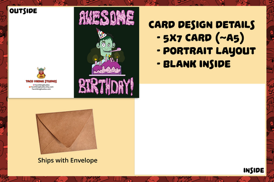 "Awesome Birthday with Brain Cake" Zombie Birthday Card
