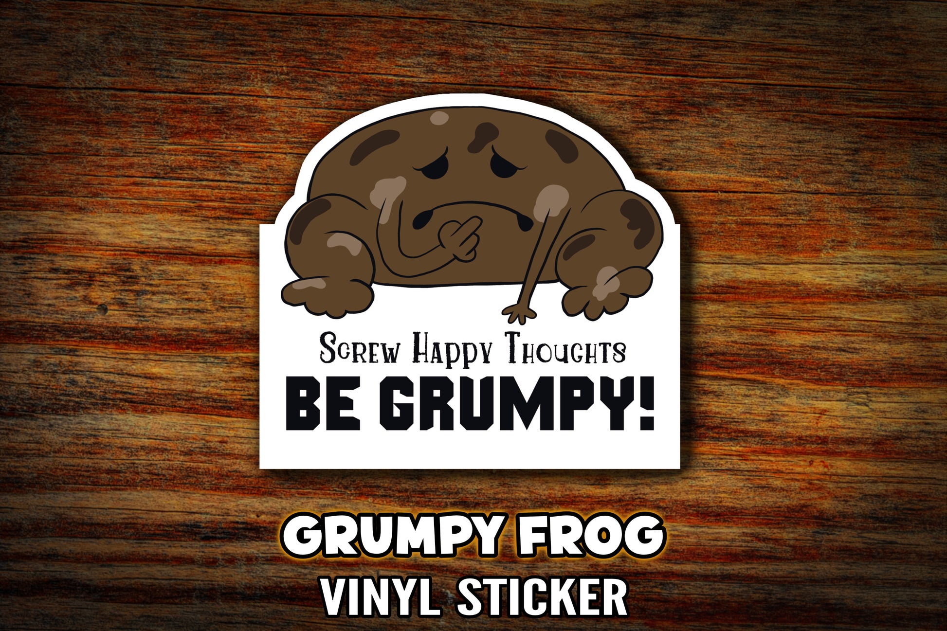 Embrace your inner grump with the "Grumpy Frog" sticker, featuring a frog that's not afraid to show off its mood. This whimsical design is perfect for anyone who wants to make a bold statement about embracing all their feelings, even the grumpy ones.