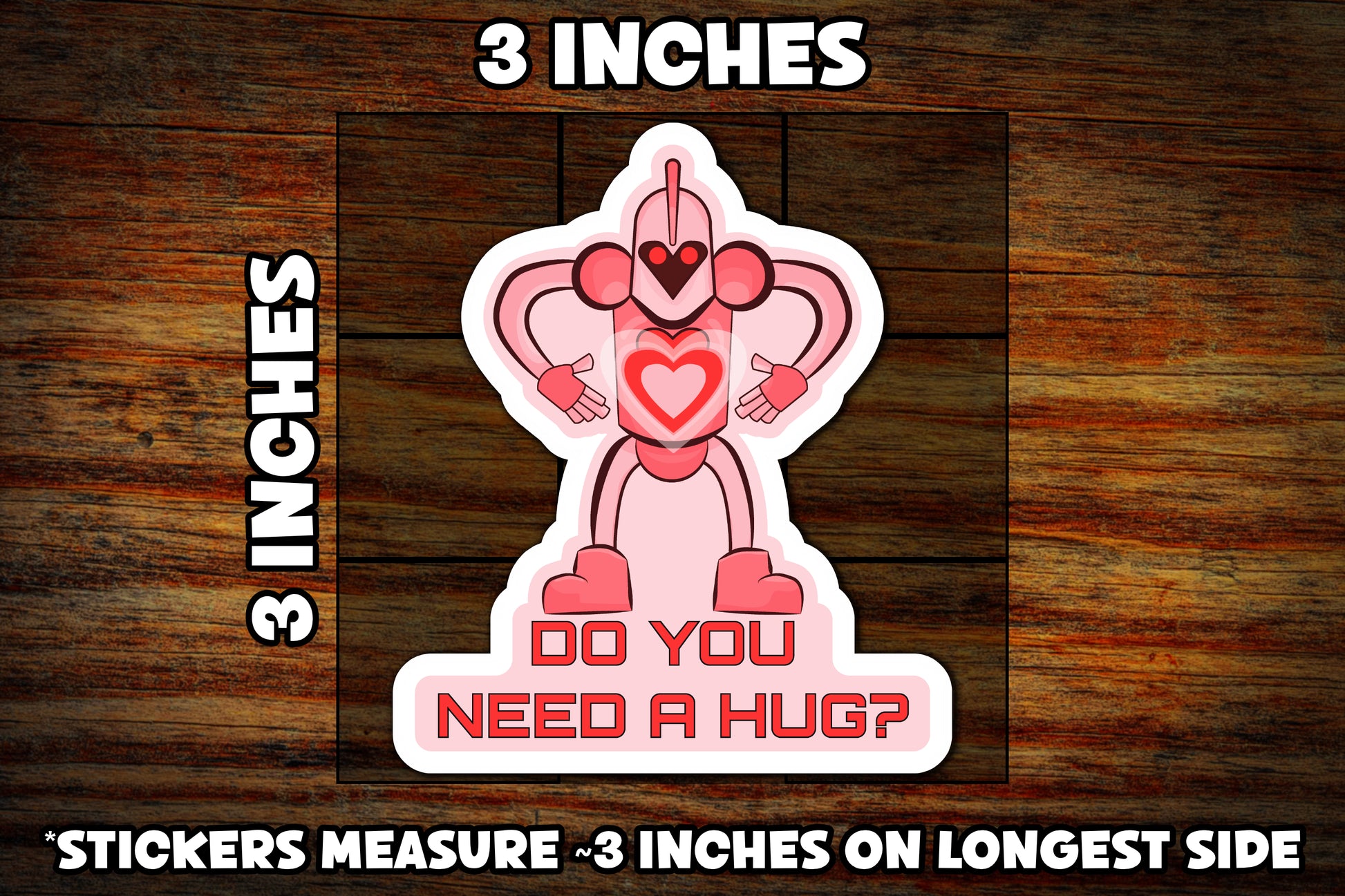 This sticker features a lovable robot ready to give hugs, adding a touch of affection and fun to your laptop, notebook, or any surface that needs a hug.