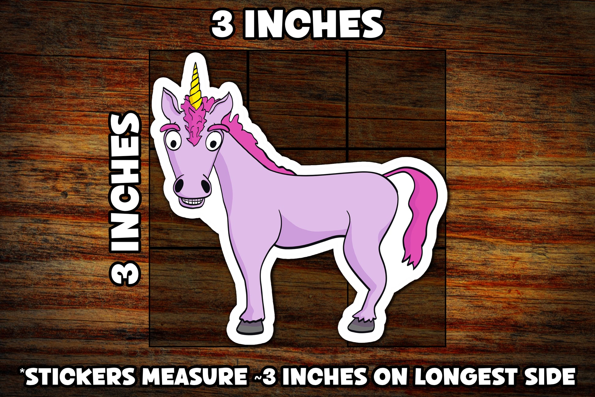 Meet the "Derpicorn," a whimsical unicorn sticker that's sure to bring a smile with its delightfully quirky expression!